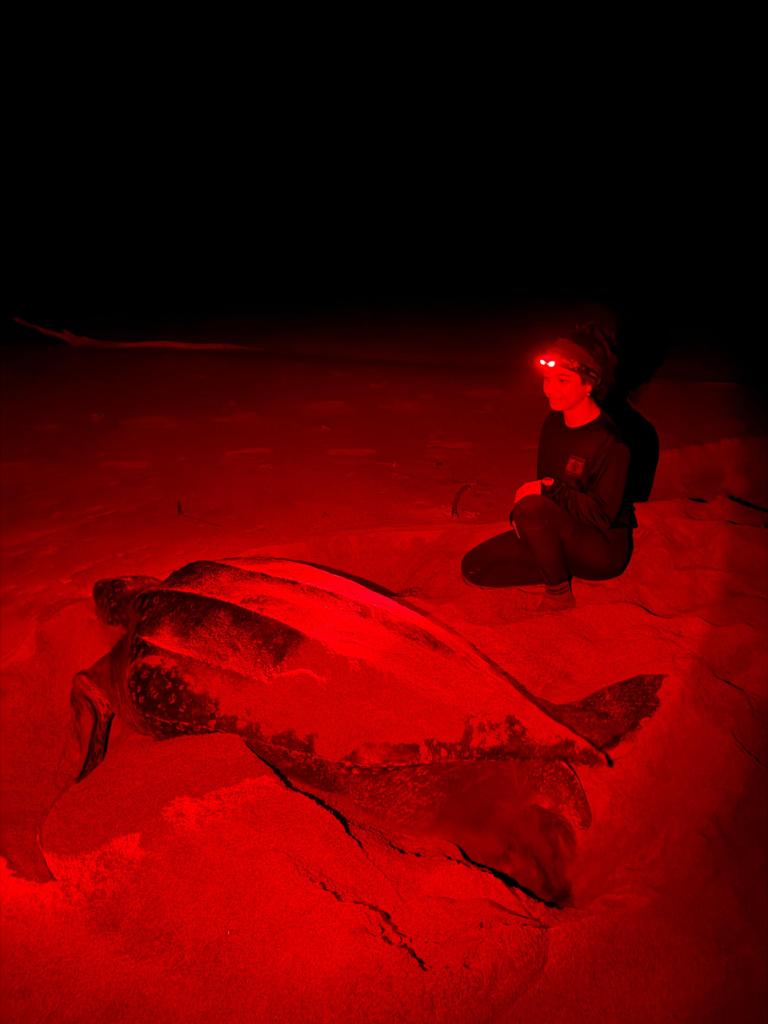 Aquí trabajamos sobre todo con tortuga baula, aunque también con carey (Eretmochelys imbricata), cabezona y verde (Chelonia mydas).